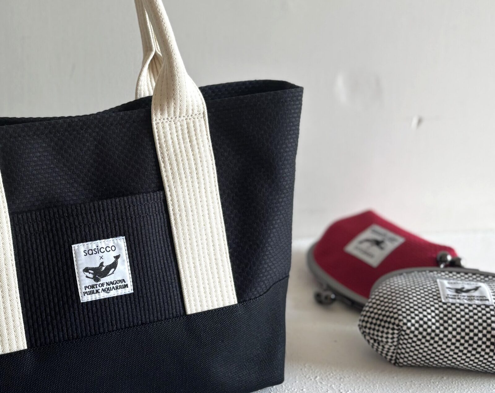 シャチをイメージして白と黒で表現したOBIトートミニは名古屋港水族館限定の特別カラーです。